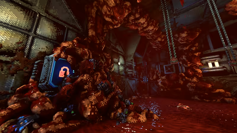 这是致敬老派FPS的战斗艺术,一种像素骨感之下的暴力浪漫。低模建模、颗粒质感、破旧战舰与动态光影交织出满屏的压迫感,让人仿佛真的置身残破科幻世界。金属碰撞、怪物嘶吼、爆炸轰鸣全程轰炸耳膜,每一次出击都像在演一部失落的血腥科幻大片!